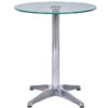 - Mặt bàn tròn bằng kính.Khung thép trụ tròn, chân đế dập.